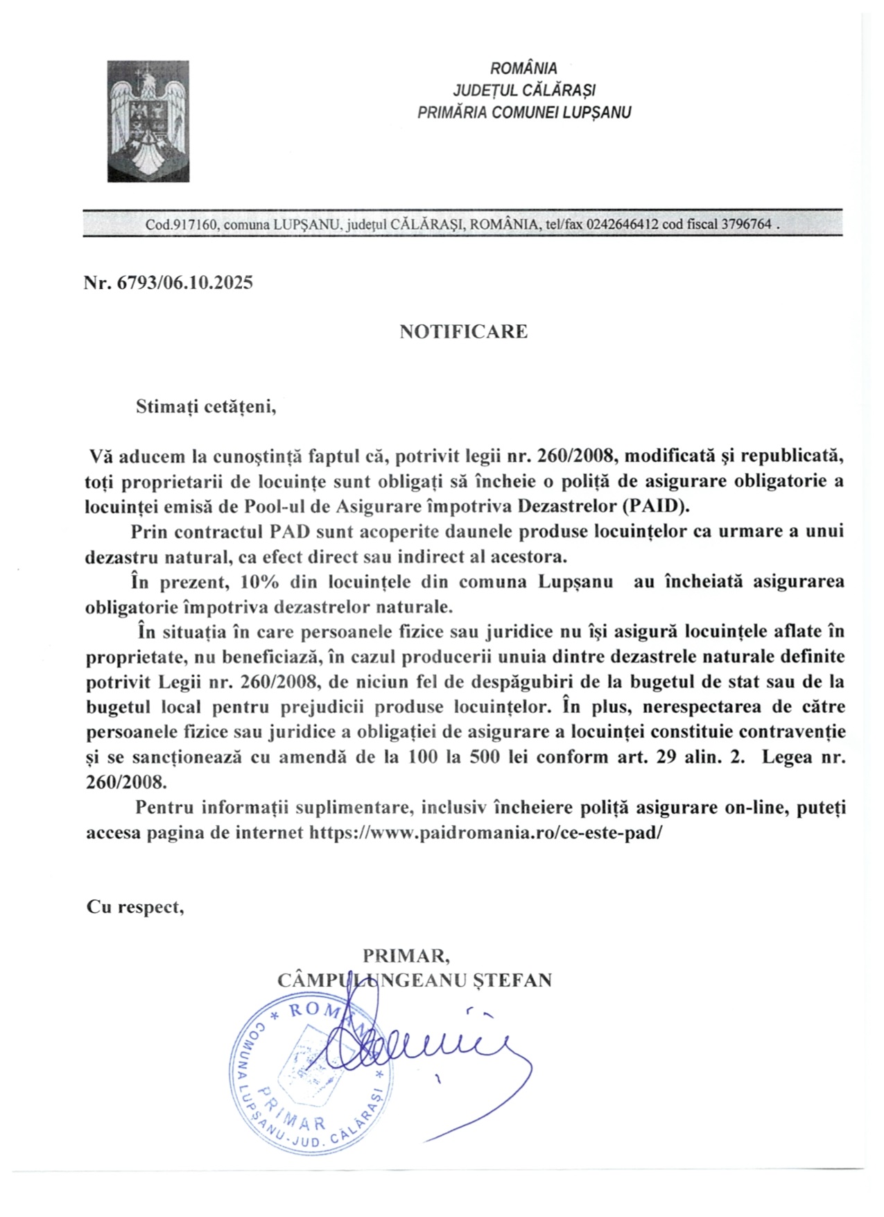 Primăria Comunei Lupșanu judeţul Călărași – Site oficial